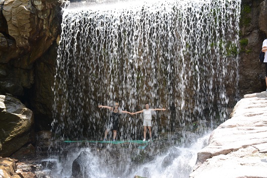 到達景區后,在導游的帶領下我們乘坐“小交通”一路上行,首先來到了綿山景點的第二站——云峰寺,之后去了水濤溝和一線天。在一線天陡峭的懸崖上有十余架天梯蜿蜒而上,而在我們的腳下是淙淙溪流。在這一路上,盛大美璃團隊表現出了他們團結互助的一面,主管白楊一路殿后生怕落下一個人,有些姑娘們不敢往前,大家就給以鼓勵,予以幫助,在這尖叫連連聲中到達了一線天的頂峰。這是整個游覽中最驚險,最刺激的一個環節,也是最考驗人的一個環節,雖然艱險,但是盛大鋼構的每位成員都表現出了不怕困難、勇往直前的不服輸的精神。