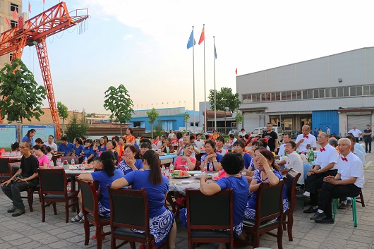 為了豐富職工的業余文化生活,增強公司與員工之間的感情,山西盛大鋼構自去年起,開始籌辦起了一年一度的職工消夏晚會。本次晚會不僅有我廠職工參與表演,同時公司還邀請到了祁縣西大街社區老年協會的大爺大媽們來盛大鋼構一展他們的風采,同時也有很多職工家屬報名參與其中。而且公司為大家準備了豐富的零食、夾肉餅、水果、啤酒、飲料等,供大家在觀看的同時享用。整個晚會現場人山人海,節目內容更是豐富多樣:歌曲、舞蹈、四句半、二重唱、小提琴、口琴、怪調……公司維修師傅李建忠的口琴獨奏更是嗨爆了全場的氣氛,臺下掀起了一次又一次的小高潮,李建忠師傅不僅在機械設計和維修方面技藝精湛,而且在文藝表演方面又多才多藝,讓大家很是欽佩。